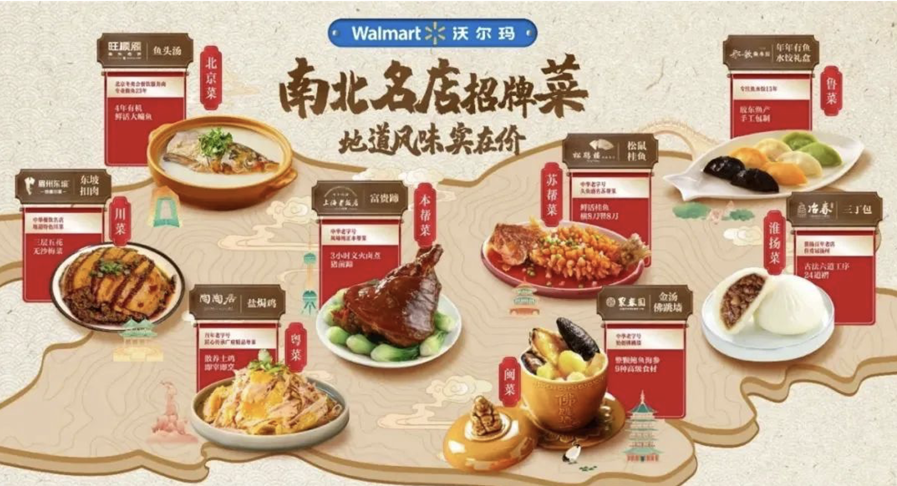 實際上,為了承包家家戶戶的年夜飯,預制菜商家們也使出了渾身解數,比如零售巨頭沃爾瑪就聯合多家餐飲企業推出了“南北名店招牌菜”,西貝、盒馬、安井、桂滿隴等也紛紛推出了特色年味禮盒,道道都是硬菜,包裝也十分考究。